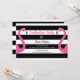 Fun pink flamingos accent this fun Graduation Invitation on a striped black and white background, making it perfect for a summer BBQ, luau, gathering by the pool, or summery party.