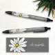 Trendy Floral Daisy with grey yellow custom name Black Ink Pen