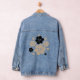 Trendy Flower Pattern in Taupe, Black, and White Denim Jacket