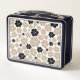 Trendy Flower Pattern in Taupe, Black, and White Metal Lunch Box