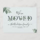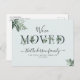 Announce your new home to family and friends with this modern design of script lettering and greenery foliage.