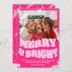 Trendy Fun Merry & Bright Pink Christmas photo Holiday Card