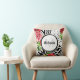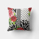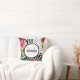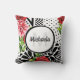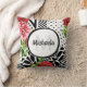 Trendy Geometric Stripe Pattern Red Foral Monogram Cushion