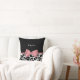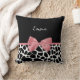 A trendy black and white giraffe print square throw pillow with a girly rosy pink ribbon tied into a cute bow. Personalise this elegant animal print design by adding your name. Reverse side has a black and white giraffe pattern. Flat printed image, not actual bow.