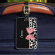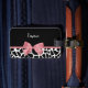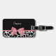 A trendy black and white giraffe print luggage tag with a girly rosy pink ribbon tied into a cute bow. Personalise this elegant animal print design by adding your name. Flat printed image, not actual bow.