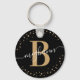 Girly, elegant, trendy, modern, black and gold, monogram initial name script custom personalised monogrammed keychain. Featuring a monogram initial and a girly name script in a hand lettered calligraphy swash tail font and dotted circle frame around your monogram. Perfect feminine gift for sister, mother, girlfriend, birthday, wedding, bridal shower, sweet 16 birthday party, or anyone who loves pretty girly modern style.