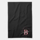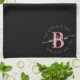 Trendy Girly Pink Black Name Monogram Script Tea Towel