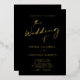 Trendy Modern Real Gold Foil Calligraphy Script Black Wedding Invitation... Our trendy gold on black wedding invitation features modern calligraphy script combined with serif and sans serif typography for an elegant and chic wedding invitation... in real gold foil. All example text (aside from the graphic calligraphy elements) can be easily revised with your own information on the personalisation template.