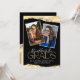'Let's celebrate the Grads' by throwing a double graduation celebration! These trendy graduate invitations feature a black background, faux gold glitter decoration, neon lights, two framed photographs and a modern template that is easy to customise. All party details are on the reverse.