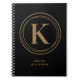 Simple spiral bound notebook is personalised with your monogram initial surrounded by gold circles and your full name below. Ideal for yourself, for school, book club or a gift for any occasion. MORE colours in our store.
