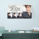 Trendy personalised graduation banner featuring a four photos of the graduate. Hand script typeface "Congratulations!" header with elegant minimalist typography details. Clean, simple composition focused on a large feature photo alongside three small detail photos. Terrific party decor and keepsake of a spectacular step in one's educational journey.