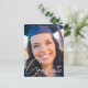 This trendy graduation announcement postcard features sophisticated handwritten white script over a chic full photo of your graduate. Customise this grad card with a 2nd high school, college, or university photograph on the back above your senior details.