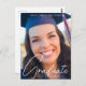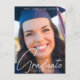 Trendy Graduation Photo White Script Overlay Postcard
