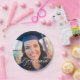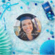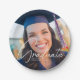 This trendy graduation party paper plate features sophisticated handwritten white script over a chic full photo of your graduate. Customise this grad decor with your high school, college, or university photograph behind your senior details.