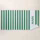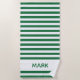 A trendy and modern striped beach towel with green and white stripe pattern. Personalise with your name.