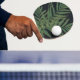 Trendy Green Palm Leaves Gold Strokes Grey Design Ping Pong Paddle