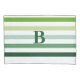 Stripes in different shapes of green. With monogram personalised pillow case in fresh colours. Trendy Home Decor for your master bedroom.