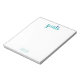 Trendy Green Watercolor Goals Personalised Stylish Notepad. Trendy and modern watercolor green and blue brushstrokes spelling out the word goals. Personalise with name in light green at the bottom of this fun notepad. Keep track of your daily or long term goals with this stylish stationery.