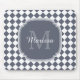 Trendy Grey and White Checked Monogrammed Name Mouse Pad