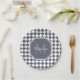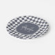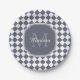 Trendy Grey and White Checked Monogrammed Name Paper Plate