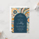 Trendy groovy flowers navy orange blue arch invitation