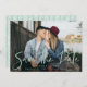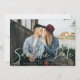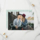 Modern save the date card featuring your horizontal engagement photo with "Save the Date" displayed in a mint green, hand-lettered script overlay. Personalise the front of the photo save the date card with your names, wedding date, and wedding collection. The back of the simple save the date card features an optional mint and white pattern.