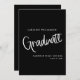 Trendy handwritten script black and white graduation invitation. This graduation invitation features a casual trendy black and white theme. Customise the back of the card with all the details for your graduation party.