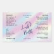 Trendy holographic design lash bath bottle label with fully editable text and handwritten style font. Brand your lash shampoo bottles with this girly pink and blue gradient foam bottle stickers. This wrap around label design should fit standard 60ml / 2 OZ lash foam bottles but please verify your bottle sizes to ensure a good fit; please do not move content further to the sides to avoid text getting cut off once label is applied to the bottle.