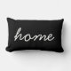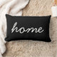 Elevate your home décor with this modern decorative lumbar pillow, featuring a trendy home quote in crisp white font set against a true black background. Designed for cosy elegance, this customisable accent pillow blends minimalist sophistication with personal charm. Easily adjust colours and fonts using Zazzle’s design tool, making it the perfect personalised addition to any space.
