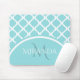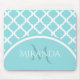 Trendy Large Aqua Quatrefoil Monongram and Name Mouse Pad