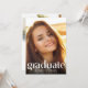 A stylish and elegant graduation announcement and party invitation that features your grad's photo overlayed with "Graduate" in trendy large white typograph and her name, school and class year in simple white typography. On the reverse side, add an additional photo and her party details.