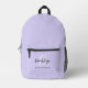 Trendy Lavender Black White Monogram Name Printed Backpack