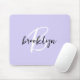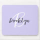 Trendy Lavender Black White Script Monogram Mouse Pad
