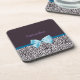 A trendy blue and plum leopard print coaster with a cute blue ribbon bow wrapped like a present. Personalise by adding your name. Perfect present for a teen girly girl!