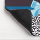 A trendy blue and plum leopard print mousepad with a cute blue ribbon bow wrapped like a present. Personalise by adding your name. Perfect present for a teen girly girl!