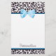 Trendy Leopard Print and Blue Ribbon With Name Stationery