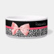 A trendy black and white leopard print item with a cute pink ribbon bow wrapped like a present. Personalise by adding your pet cat or dog name. Perfect present for your little fashionista pet!