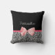 A trendy black and white leopard print pillow with a cute pink ribbon bow wrapped like a present. Personalise by adding your name. Perfect present for a teen girly girl!