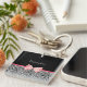 A trendy black and white leopard print double sided keychain with a cute pink ribbon bow wrapped like a present. Personalise by adding your name on one side and your contact info in a case of lost and found. Perfect present for a teen girly girl!