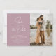 dusty rose and white typography design with stylish modern lettering. Our beautiful personalised wedding save the date cards feature a stunning design that complements any wedding theme. The front of the card features a personalised text along with a beautiful image.