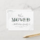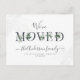 Announce your new home to family and friends with this modern design of script lettering and greenery foliage.