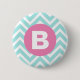 Trendy Light Blue Chevron Pink Monogram 6 Cm Round Badge