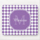 Make a splash with this trendy light purple and white geometric diamond checked tile pattern monogram mousepad. Personalise this stylish design by adding your name and monogrammed initial.
