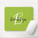 Trendy Lime Green Black White Script Monogram Mouse Pad