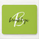 This elegant personalised mouse pad features a monogram and first name in modern black and white script on a trendy lime green background.