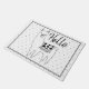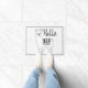 Black and white llama doormat in a sketchy style with black micro dots pattern and the word "Hello".