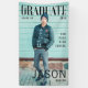 Standout and announce your grad with this unique graduation banner. The grad banner is styled to look like the magazine cover from a stylish, trendy magazine. The design incorporates a large magazine feature image placeholder for your own grad's photo. The masthead of the magazine "The Graduate" creates the magazine name. Customise with your year, school, name, and last name.