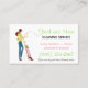 Professional Cartoon Pink and Green Maid House Cleaning Services Business Card.