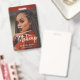 A modern trendy style makeup artist business employee badge featuring white modern script typography and a glamourous photo. Upload your own glam photo.