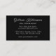 This elegant professional business card features a chic faux silver frame and lettering on black bordered by white marble. The back of the card is black with modern light grey typography with all your information which may be personalised. Designed by artist © Susan Coffey.
